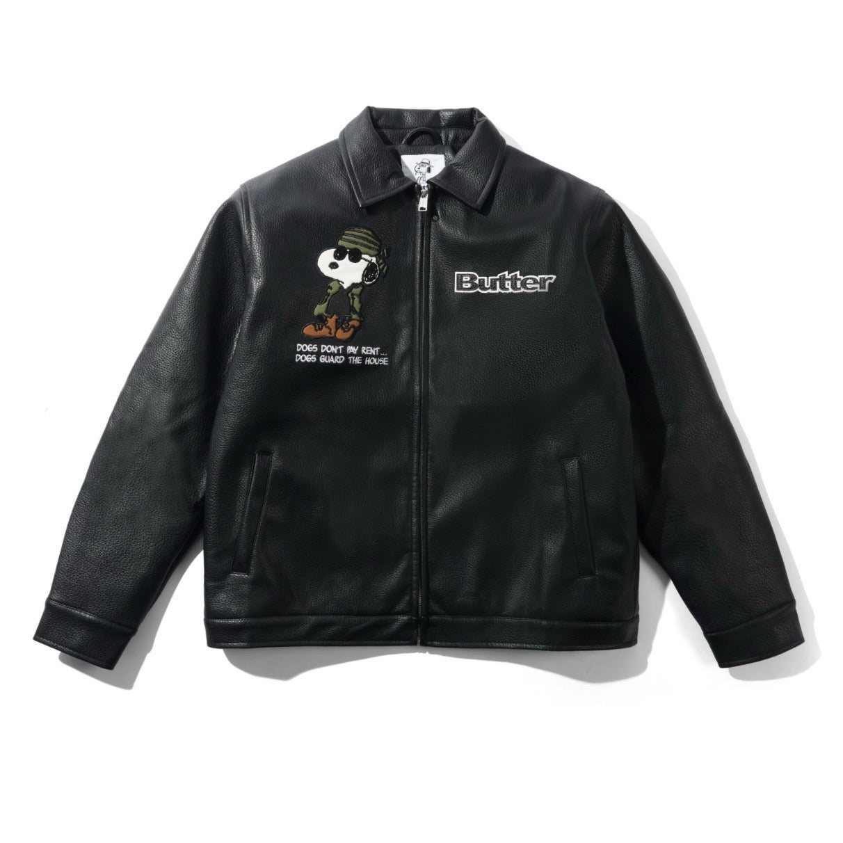 Butter Goods X Peanuts “Guard Dog" Leather Jacket // Black