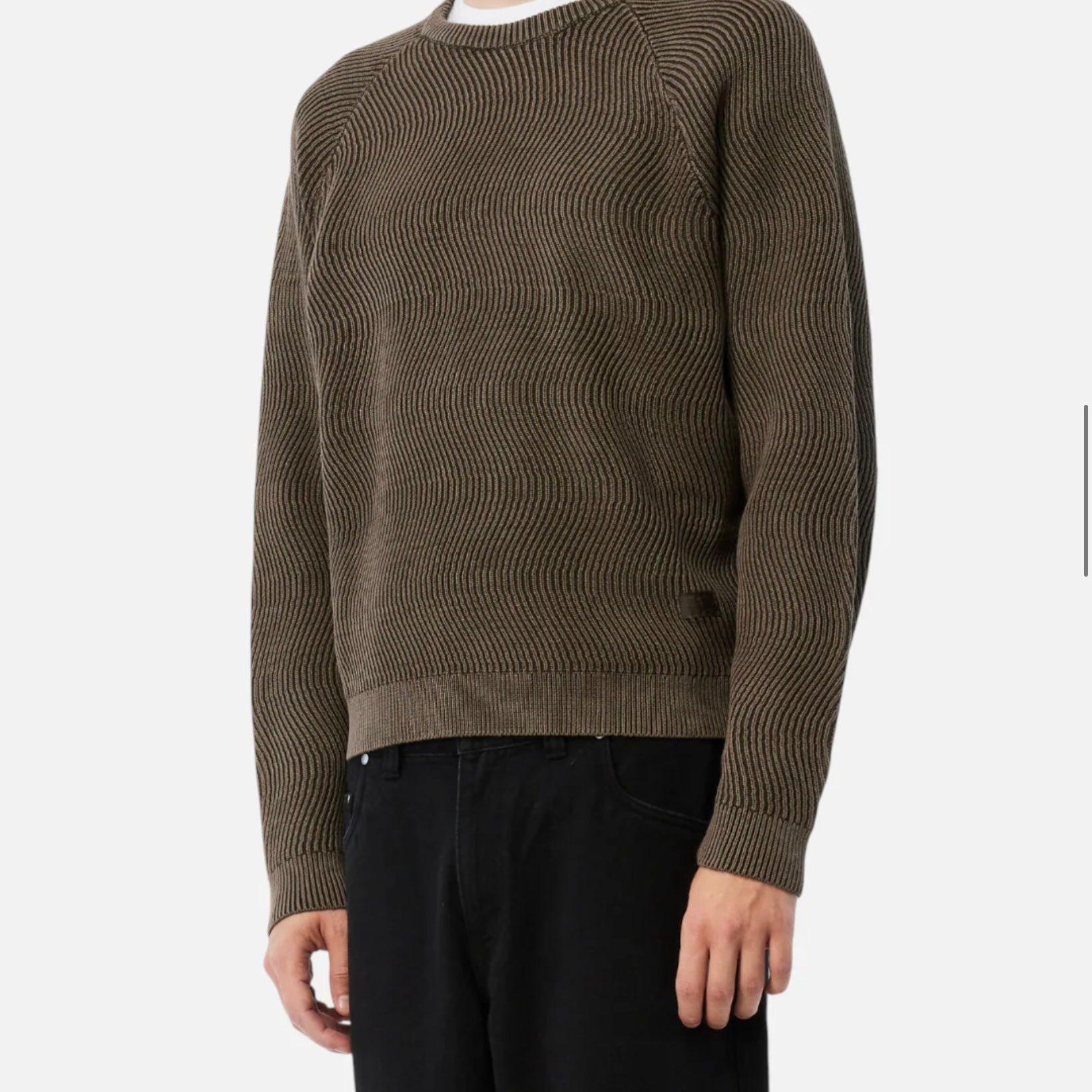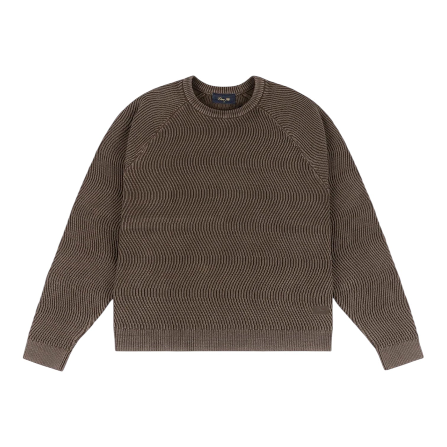 100% CottonCustom wavy pattern cable knitBranding at chestRibbed collarImportedModel is 5'9" and is wearing a size Small